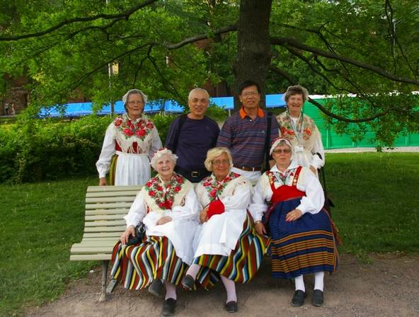 6月10日下午在芬兰图尔库古老的教堂前,遇到几位唱诗嬷嬷,一起快乐合影。
