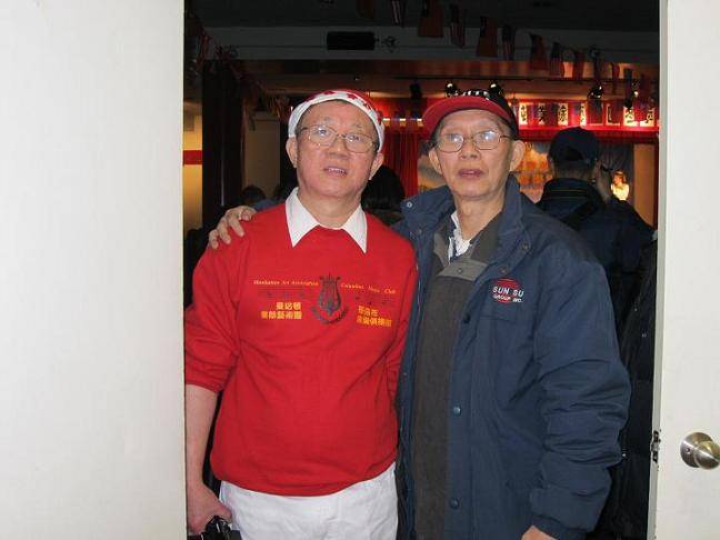 圣诞日,观看以农友王世道为团长的纽约曼哈顿业余艺术团的精彩演出期间,与其合照留影。