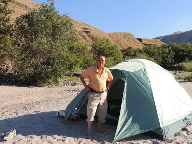 4)帐篷原是三人用的,由于没有第三者,曾兄与我,各自都睡得舒舒坦坦。虫声,鸟声,风声,流水声,声声入耳,但沙滩毕竟比弹弓床硬很多。